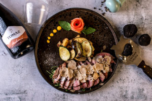 Tagliata od bifteka na rukoli s Grana sirom i crnim tartufom